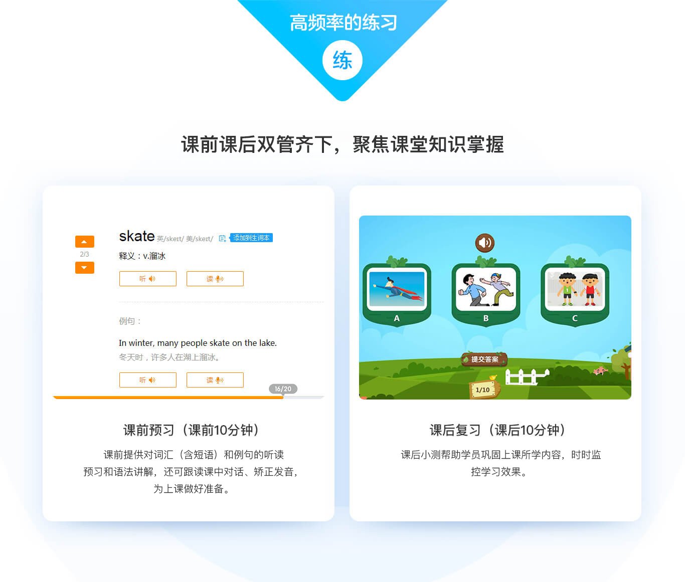 接轨国际语言和考试标准制定英语学习等级,每学习完一个级别的课程,可参加级别测试。