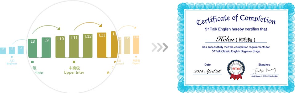 面向零基础学员的起步课程,中教老师使 用中英双语,引领零基础学员走向外教 1对1。